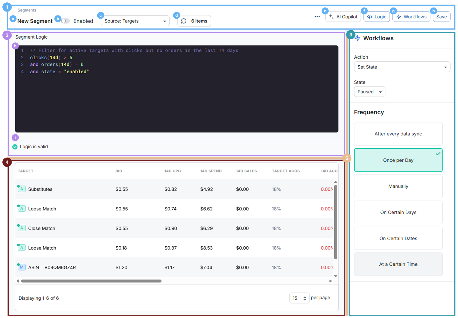 c. Source: Choose the dataset this Segment uses (Campaigns, Ad Groups, Targets, etc.). Available properties in your logic change based on this source.